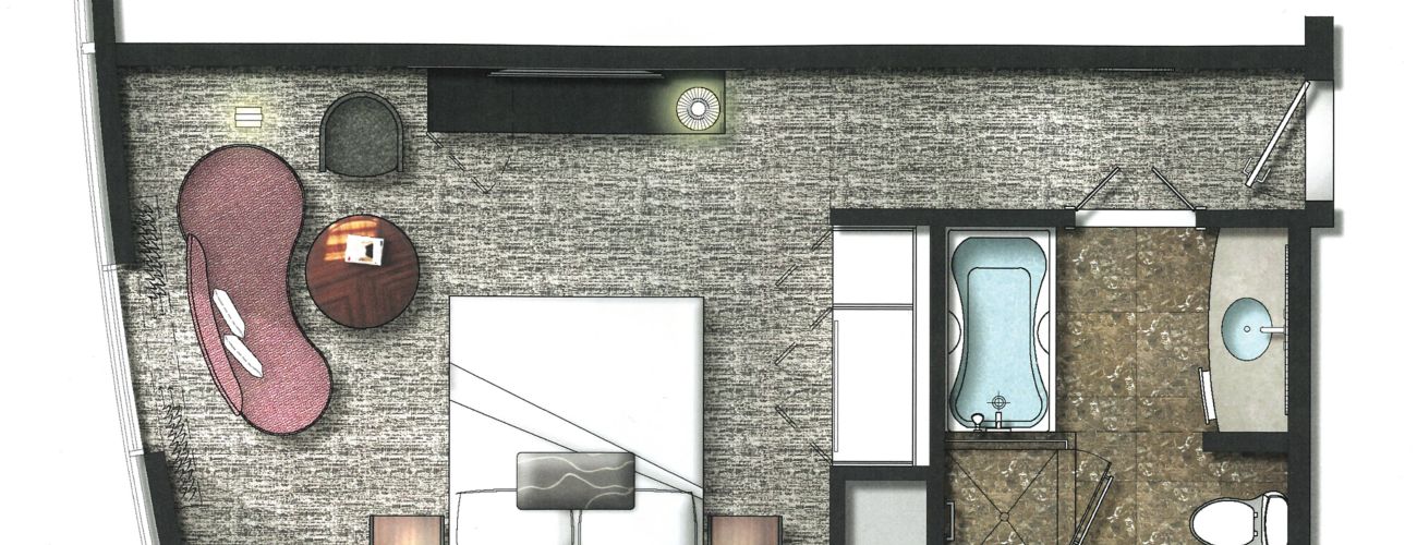 Signature Iconic Building View Suite mit 1 Schlafzimmer und Kingsize Bett Obere Etagen
