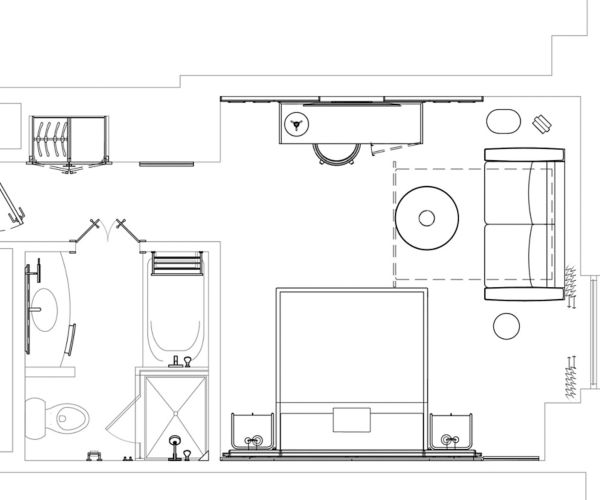 Barrierefreie Terrace Suite Skyscraper View mit 1 Schlafz und King, Wanne mit Haltegriffen
