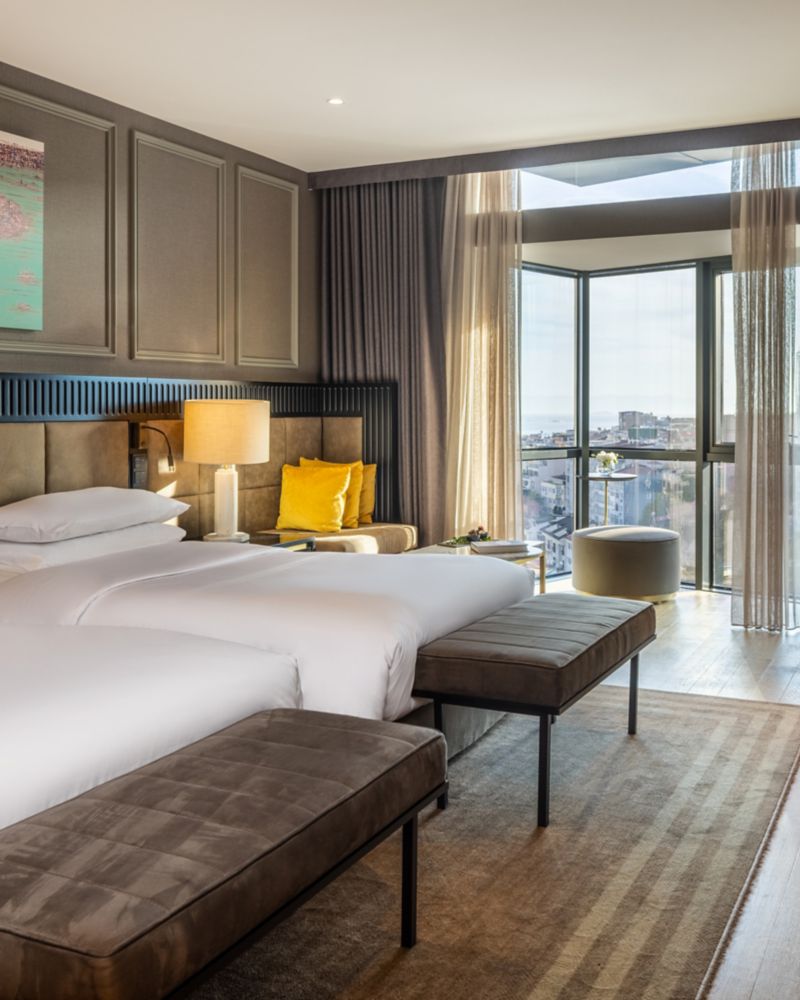 Luxury-Zimmer mit Blick auf den Taksim-Platz und Kingsize-Bett