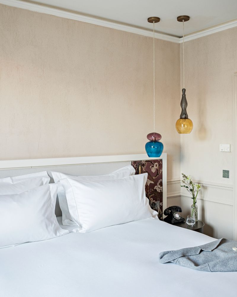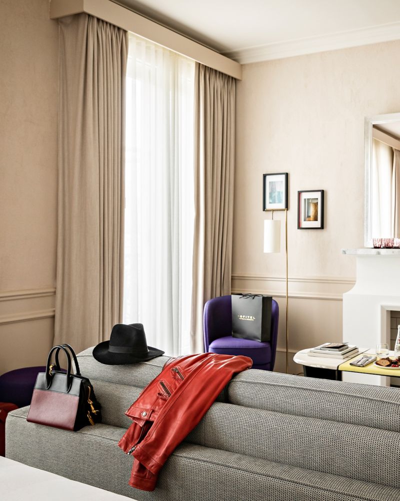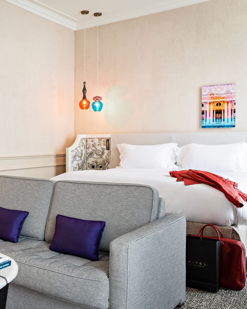 SUITE JUNIOR con 1 cama king size, sofá cama, salón y vistas a la calle Scribe