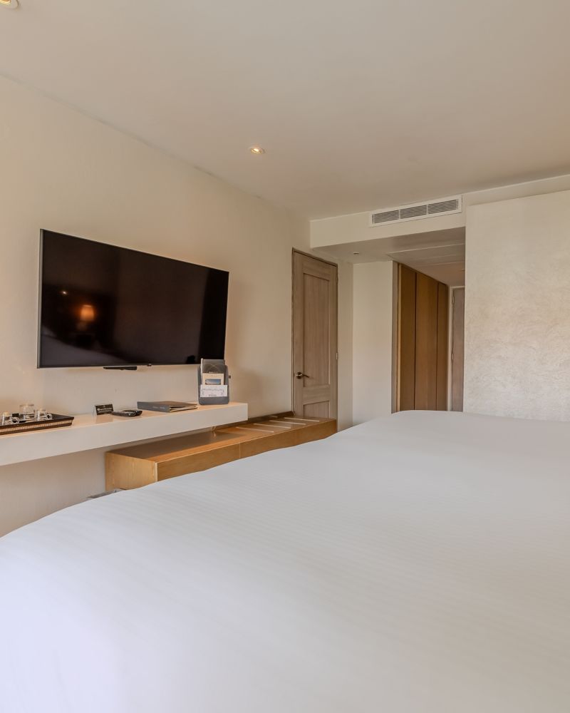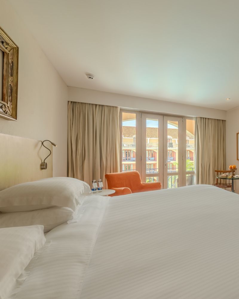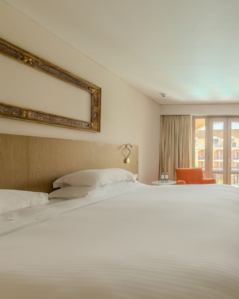 Habitación Superior de 34 m² en las plantas 2-4 de la zona Republican con una cama Sofitel MyBedTM king size y balcón privado con vistas a la magnífica piscina. Ducha con productos de tocador L'Occitane, TV LCD, Bose SoundDock y cafetera Nespresso.