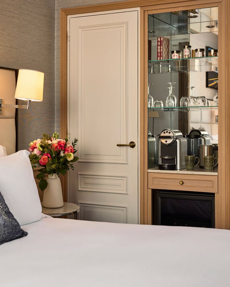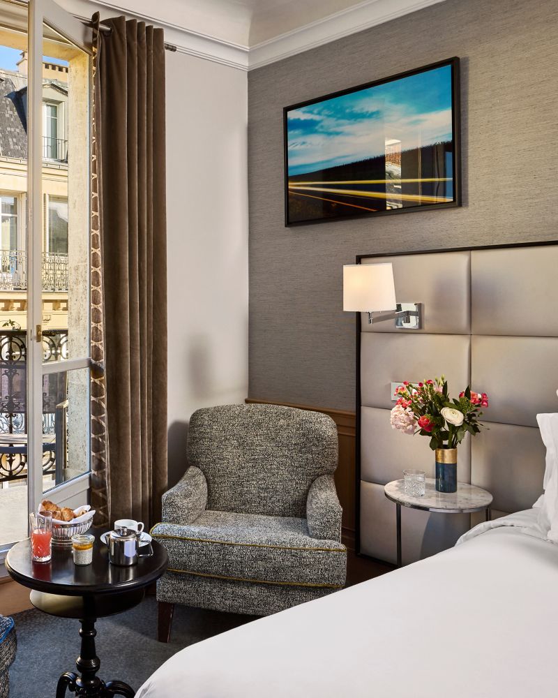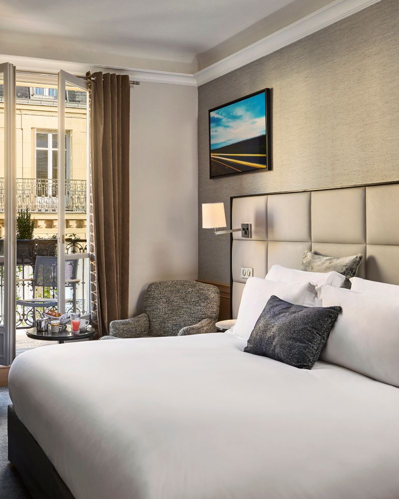 Habitación con balcón: 20-25 m² con cama king size, baño con bañera o ducha y productos BALMAIN, decoración acogedora y elegante, TV con Chromecast, WIFI gratuito, minibar y cafetera Nespresso. Cama supletoria a petición.