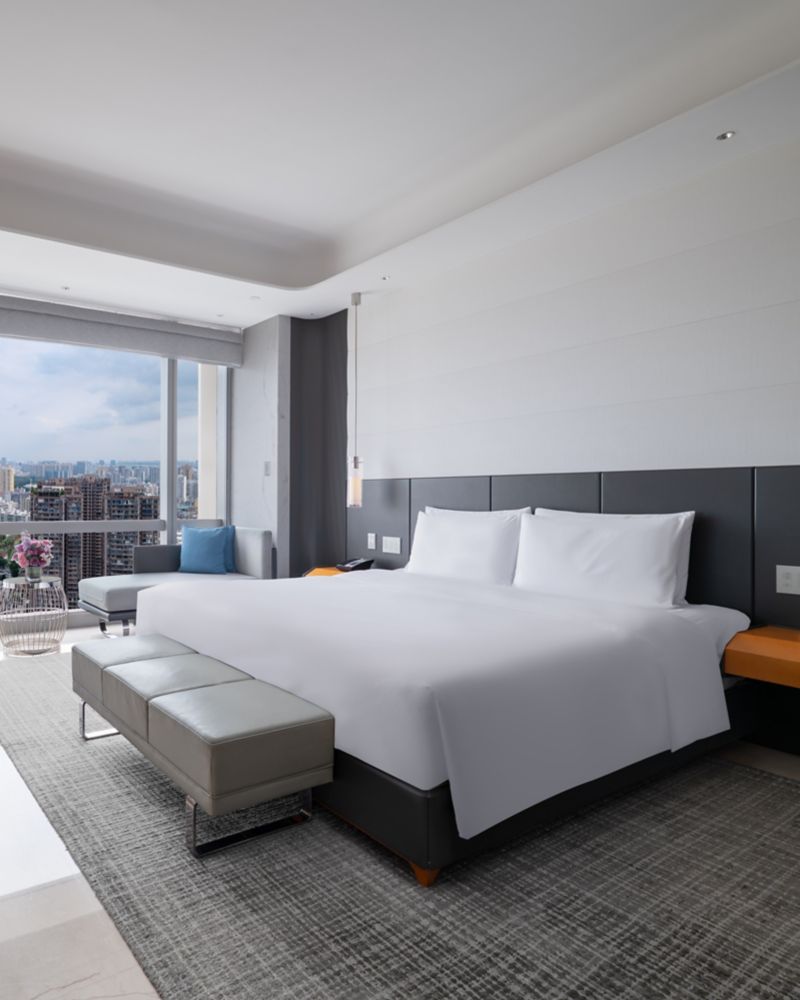 HABITACIÓN LUXURY con una cama king size y vistas a la ciudad