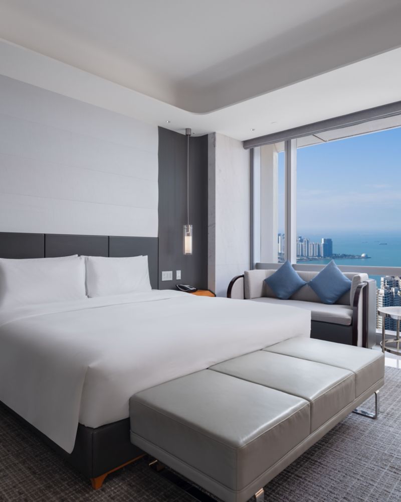 SUITE JUNIOR con una cama king size, vistas al mar y acceso al Club Millésime