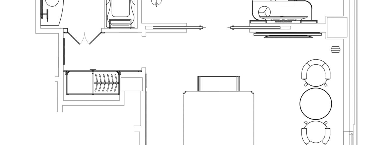 Suite Signature 1 chambre en étage élevé avec lit king size, vue sur un building iconique