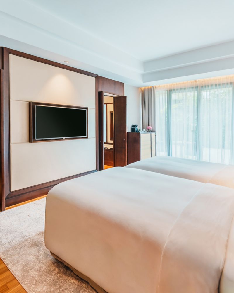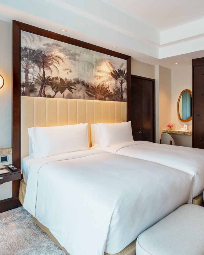 Imaginez des matins paisibles avec vue sur des jardins verdoyants. Ce refuge raffiné allie des tons naturels chaleureux au confort moelleux des lits Sofitel MY BED et aux produits d'accueil Balmain, dans un luxe imprégné de l'esprit français.