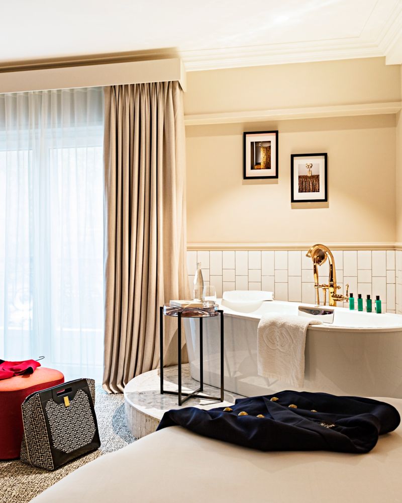 SUITE LUNA DI MIELE, 1 letto rotondo, zona salotto, vista su Grand Boulevards, vasca