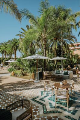 No Sofitel Marrakech, a luz dourada filtra através da copa das palmeiras, especialmente a impressionante palmeira-das-canárias, seus troncos esculpidos se elevam como arte viva. Ao seu redor, a natureza parece abundante, mas intencional.