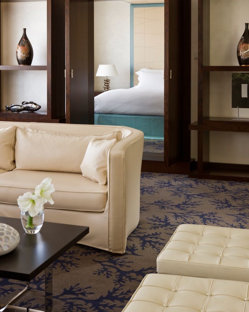 尊享套房,位于顶层,可欣赏老港风景,配备特大床,并可享用休闲区、水疗中心和健身房