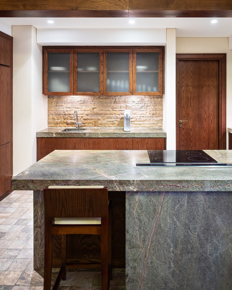 家庭三卧室公寓,位于顶层,可欣赏海景,配备 2 张特大床、2 张单人床、厨房