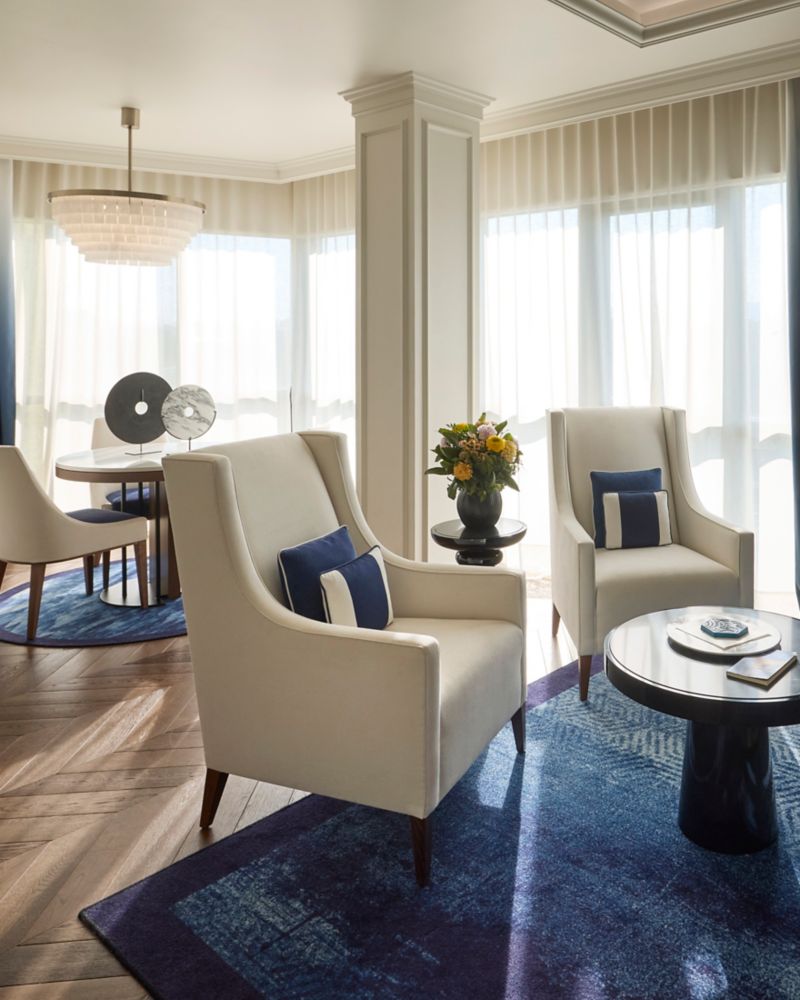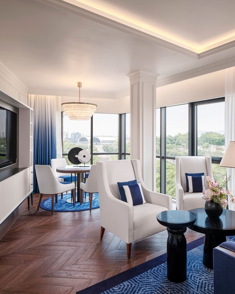 尊享套房,设有起居室,可欣赏城市美景。