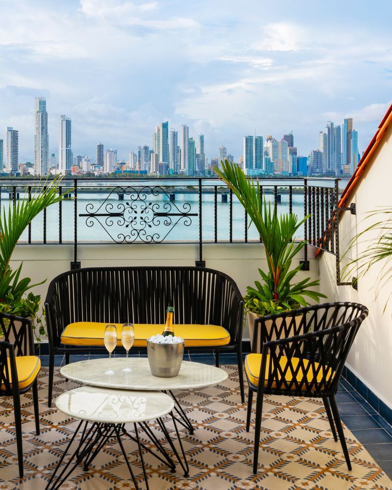 尊尚房,配备 1 张特大床,面积 60 平方米(646 平方英尺),阳台带会客区,可欣赏广场庭院或老城景观