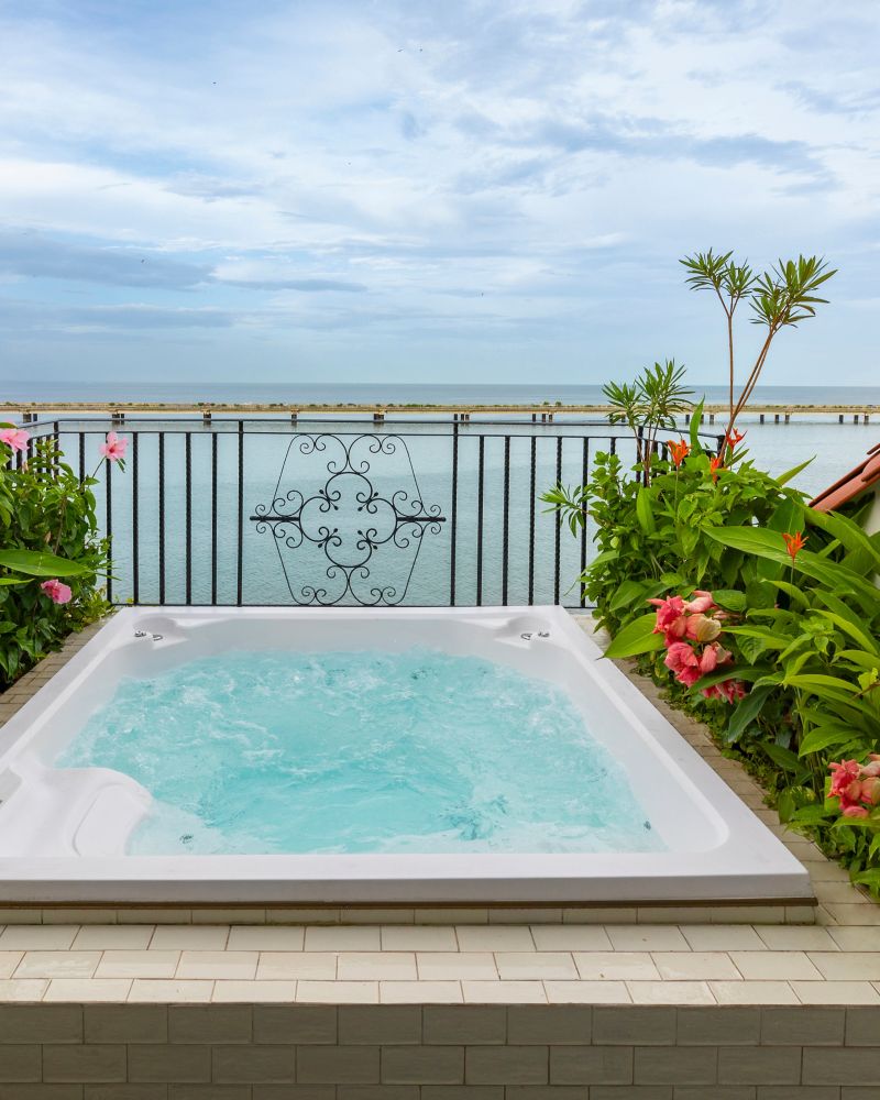 海景单卧室帝王套房,配备 1 张特大床,面积 190 平方米(2044 平方英尺),带 4 个阳台,其中 1 个设有私人按摩浴缸