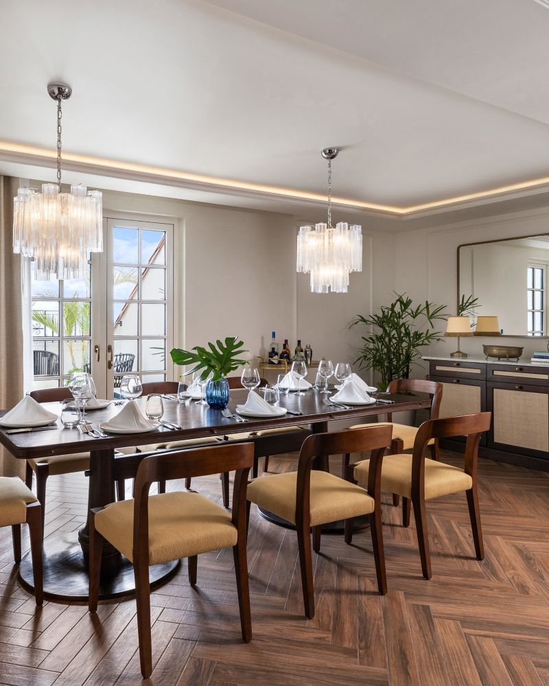尊尚房,配备 2 张全尺寸床,面积 55 平方米(592 平方英尺),阳台设有起居区,可欣赏广场庭院景观